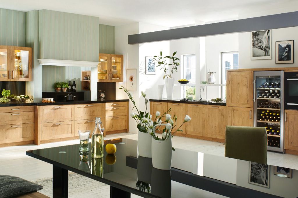 Cadre chêne Castell, une cuisine, à première vue certes moderne par analogie au Mouvement moderne sobre, certains éléments lui confèrent toutefois des traits romantiques. La poignée souligne l’aspect massif du bois. Le plan de travail Nero Assuluto apporte l’exclusivité dans la cuisine. Une cuisine bien-être.